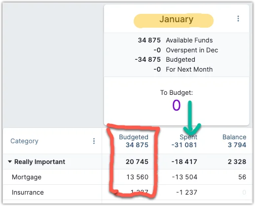 Arrows can inadvertently be misunderstood as pointing from something rather than to. As we see in the example below, the reader can not be sure if the arrow means the column, the column header or if To Budget is involved.